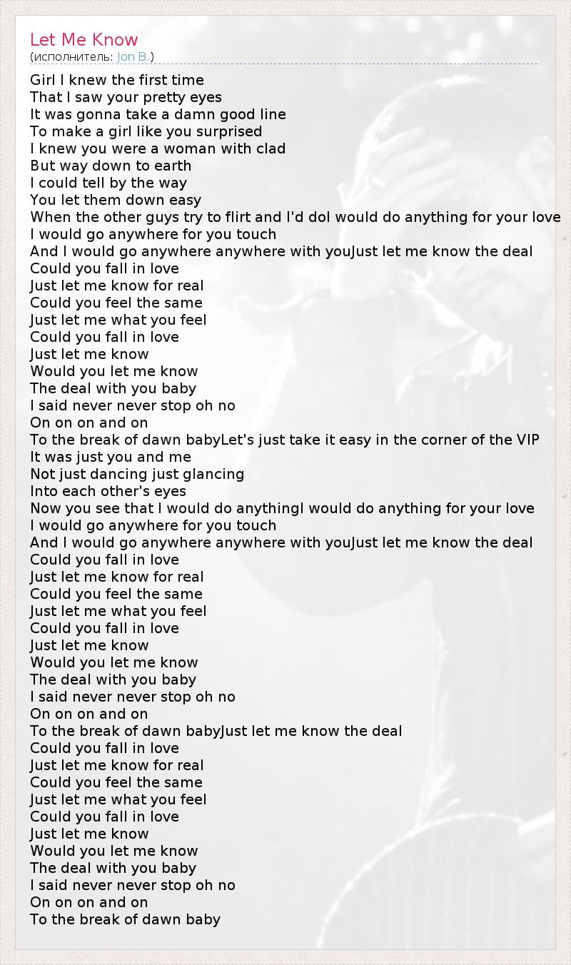А как ты думаешь, о чем песня "Let Me Know" ?
