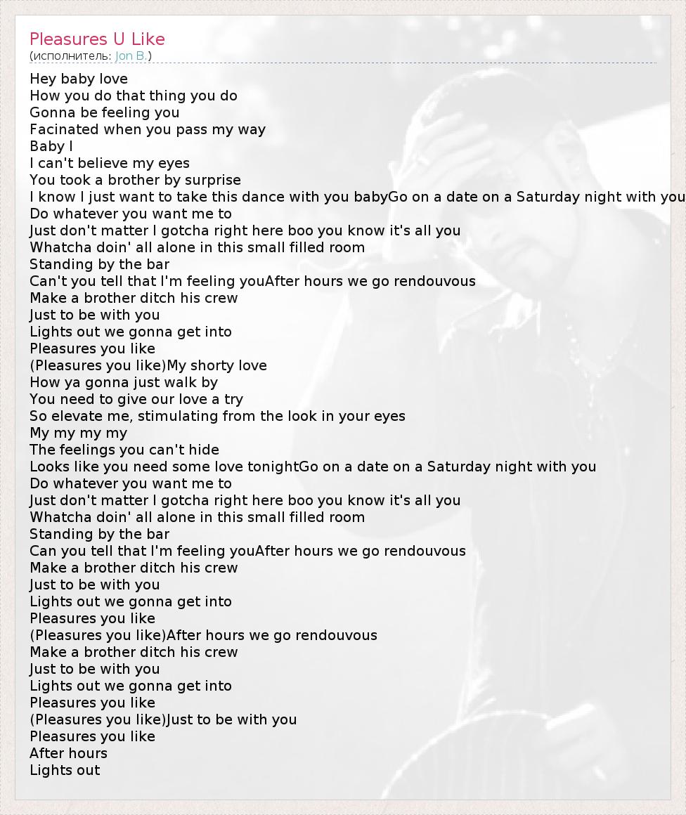 А как ты думаешь, о чем песня "Pleasures U Like" ?
