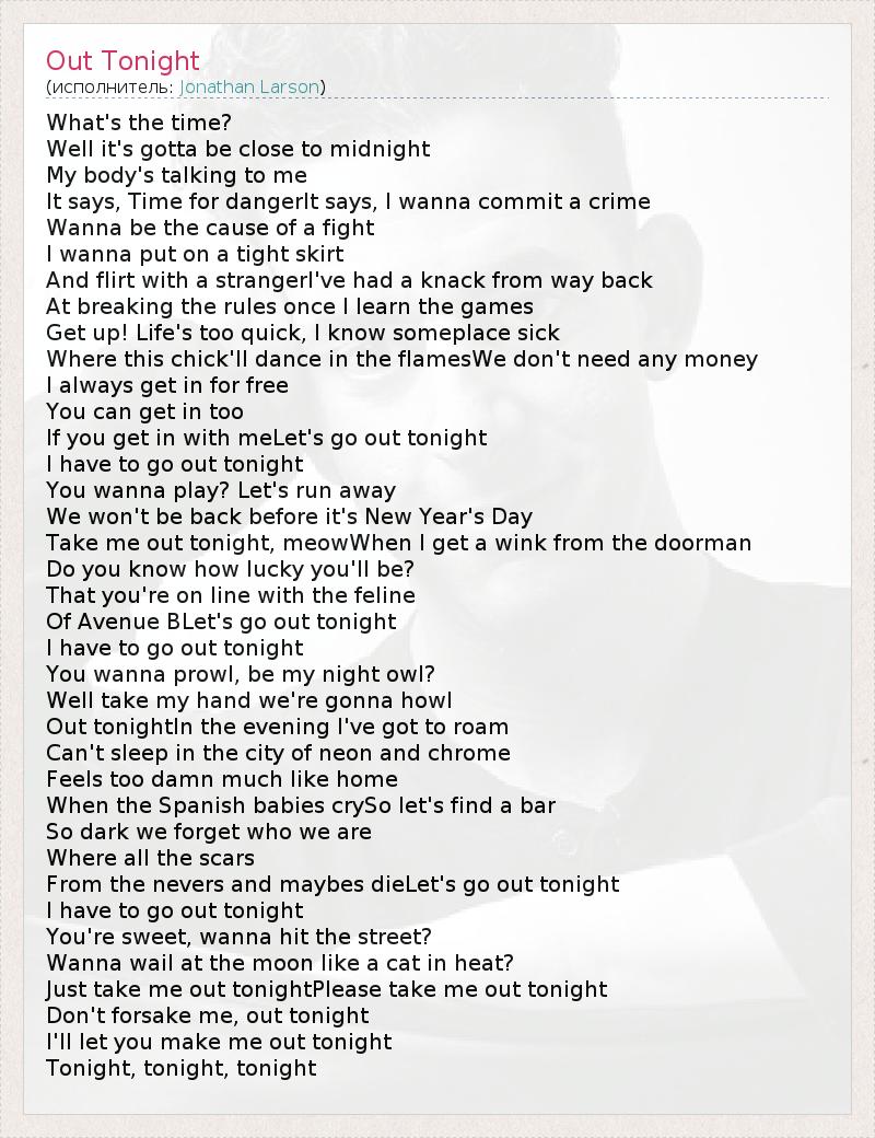 А как ты думаешь, о чем песня "Out Tonight" ?