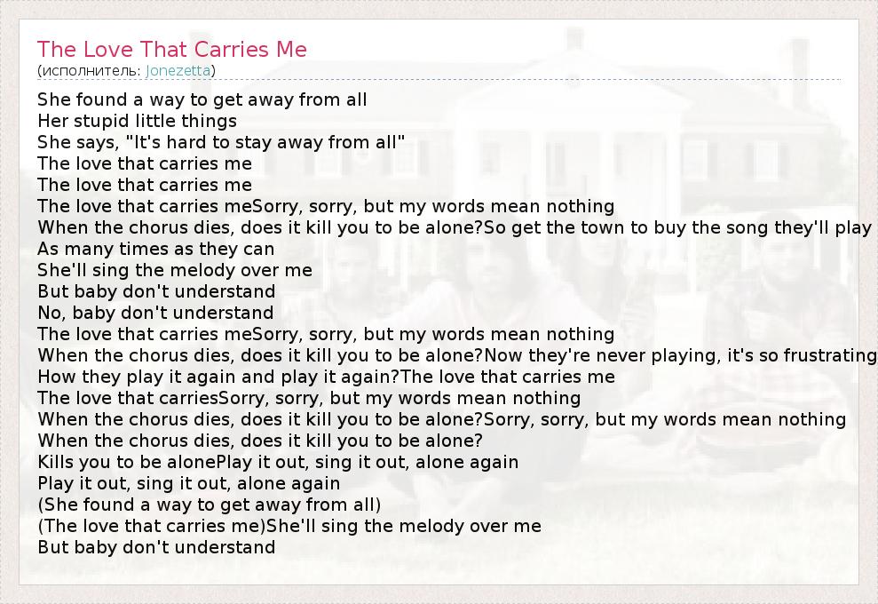 А как ты думаешь, о чем песня "The Love That Carries Me" ?