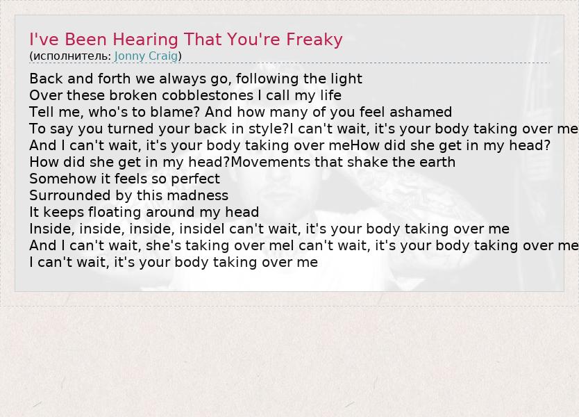 А как ты думаешь, о чем песня "I've Been Hearing That You're Freaky" ?