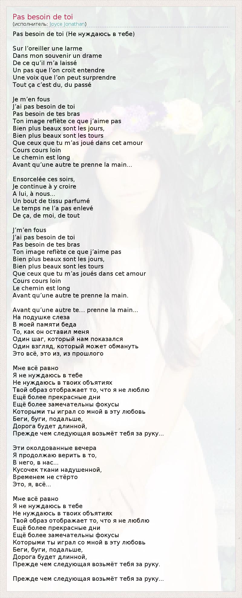А как ты думаешь, о чем песня "Pas besoin de toi" ?
