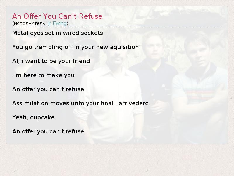 А как ты думаешь, о чем песня "An Offer You Can't Refuse" ?