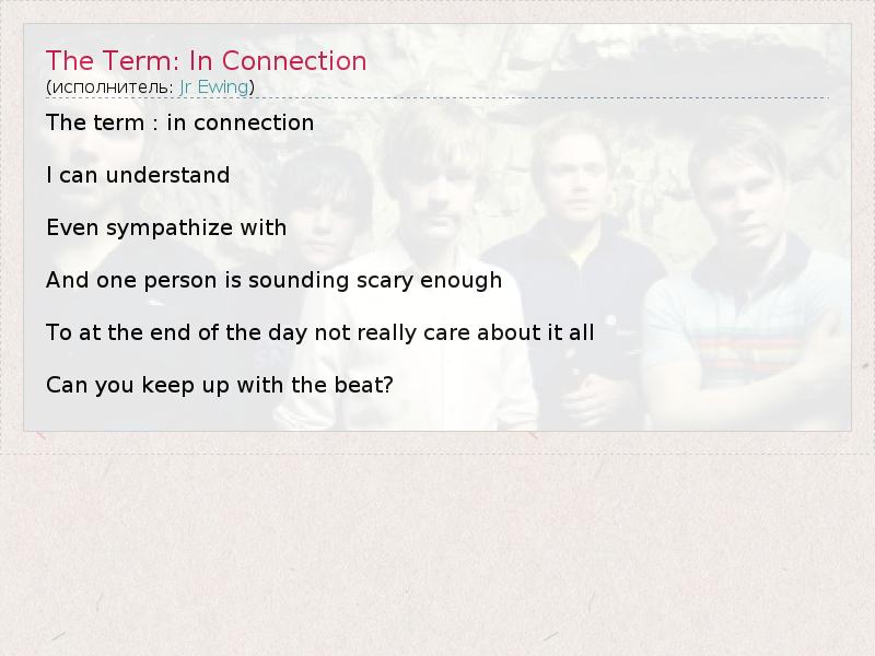 А как ты думаешь, о чем песня "The Term: In Connection" ?