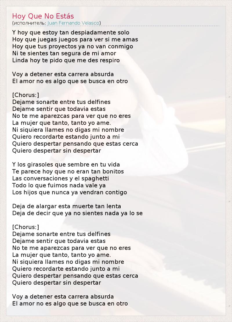 А как ты думаешь, о чем песня "Hoy Que No Estás" ?
