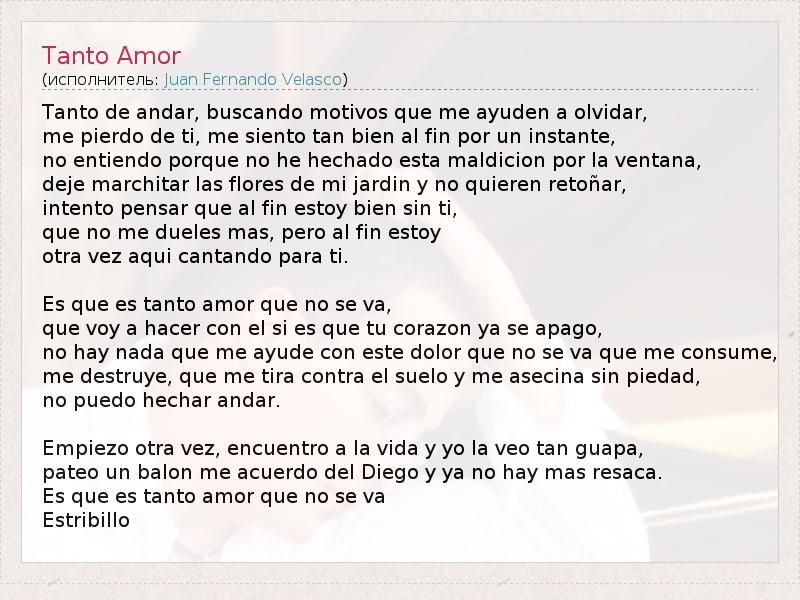 А как ты думаешь, о чем песня "Tanto Amor" ?