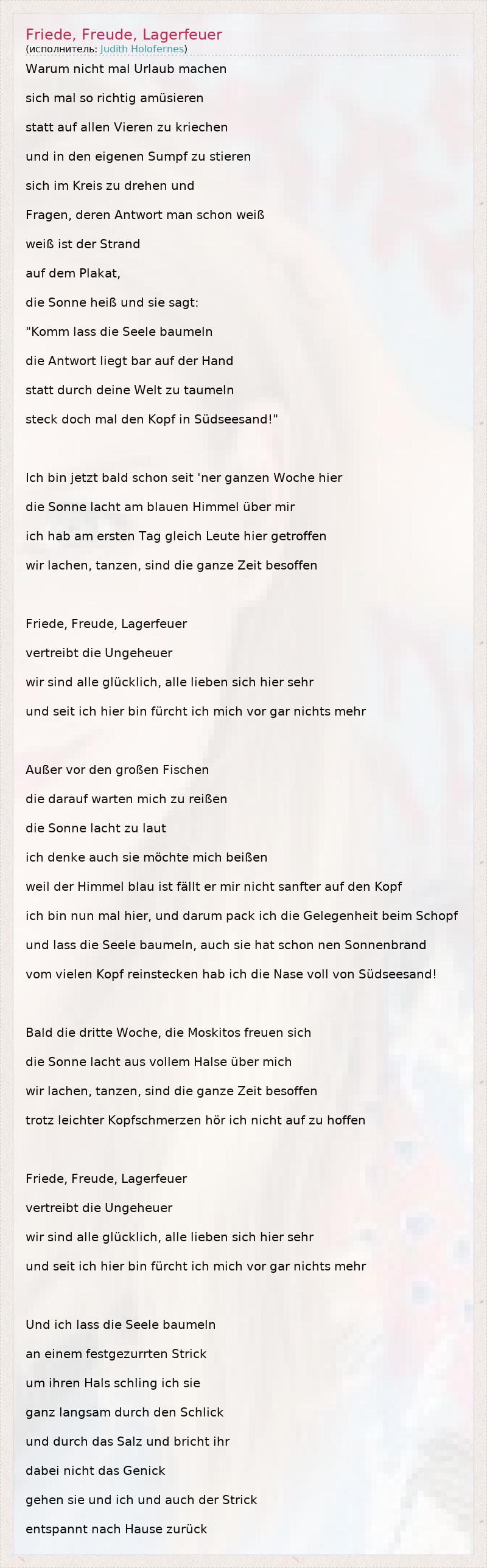 А как ты думаешь, о чем песня "Friede, Freude, Lagerfeuer" ?