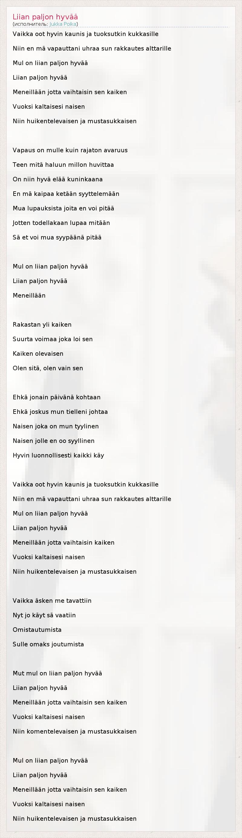 А как ты думаешь, о чем песня "Liian paljon hyvää" ?