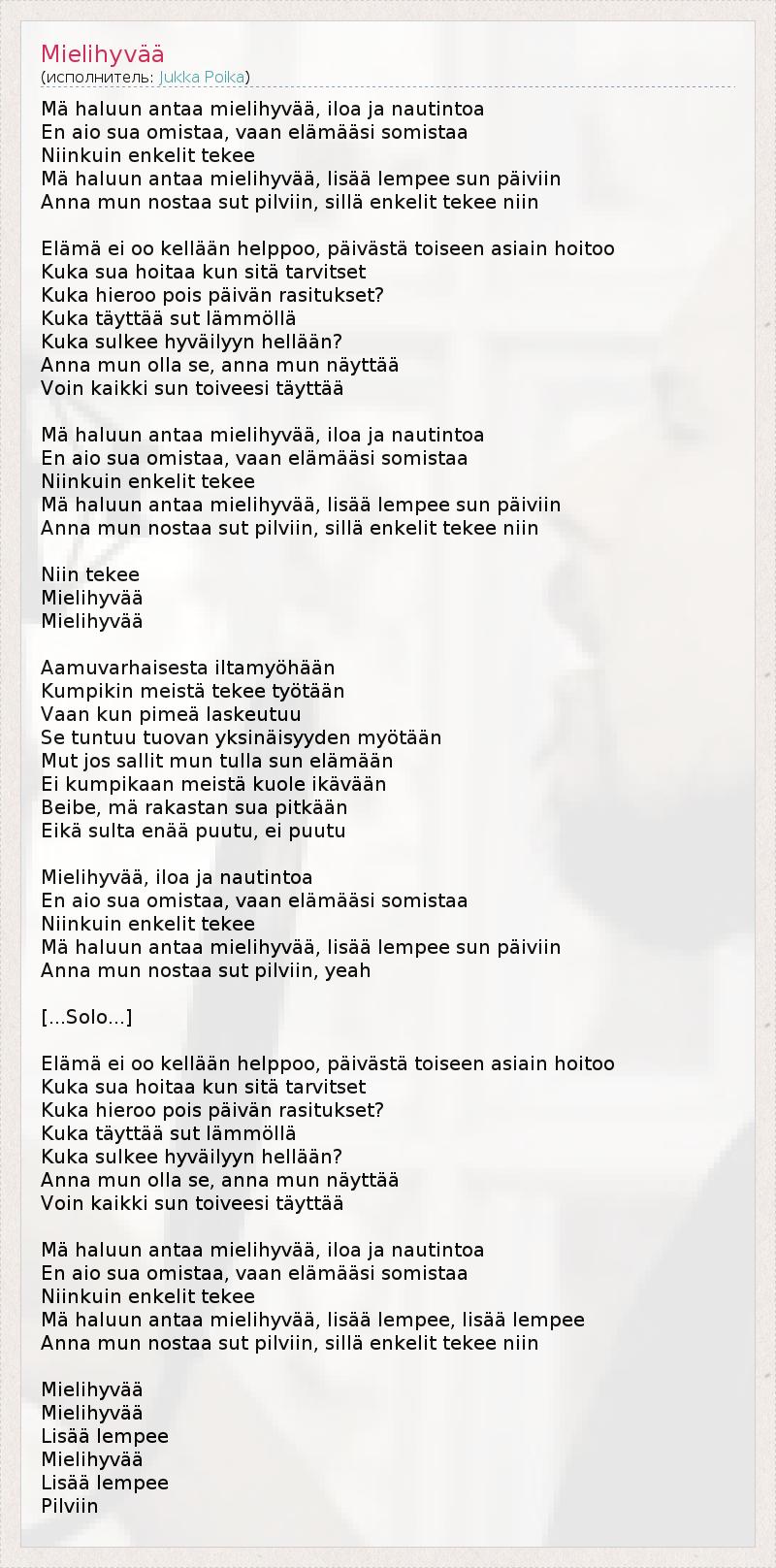 А как ты думаешь, о чем песня "Mielihyvää" ?