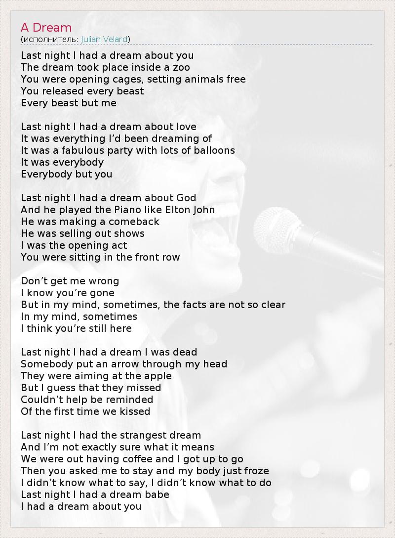 Last night I had a dream about you