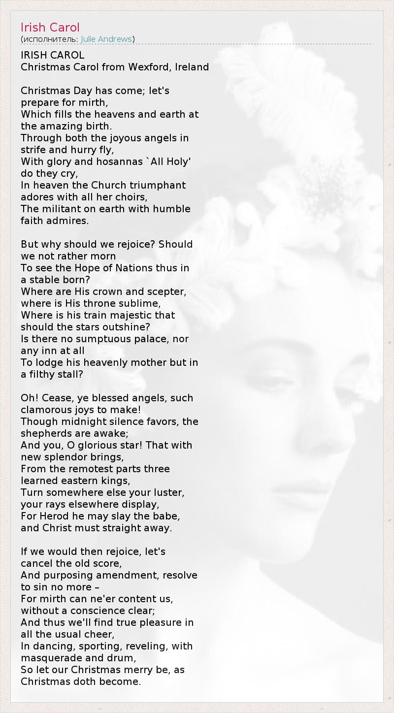 А как ты думаешь, о чем песня "Irish Carol" ?
