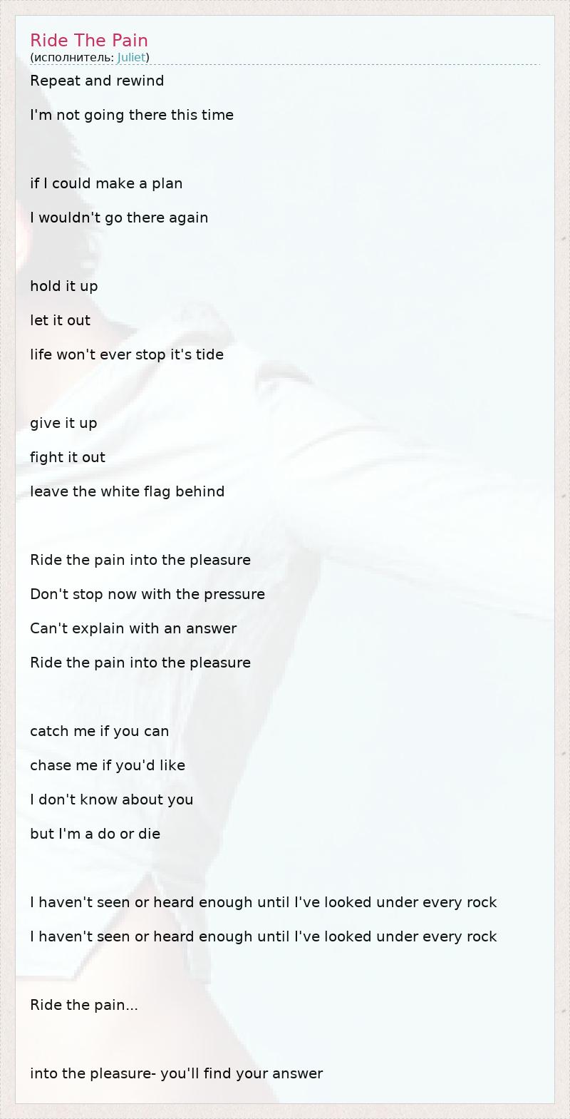 А как ты думаешь, о чем песня "Ride The Pain" ?