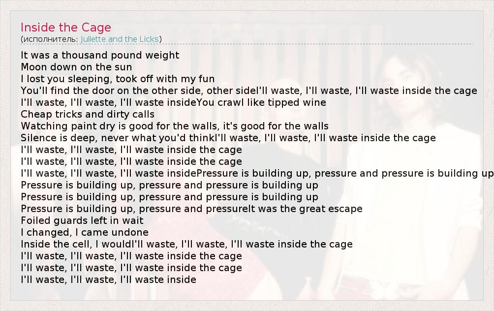 А как ты думаешь, о чем песня "Inside the Cage" ?