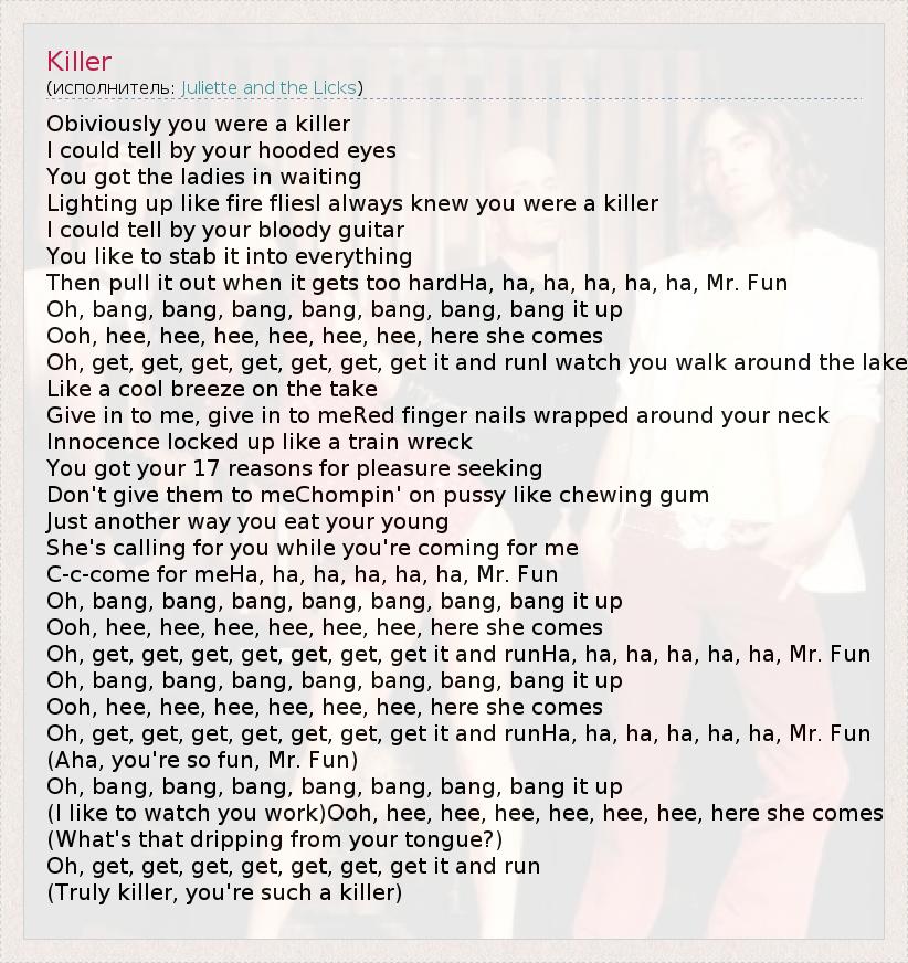 А как ты думаешь, о чем песня "Killer" ?
