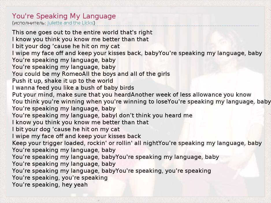 А как ты думаешь, о чем песня "You're Speaking My Language" ?