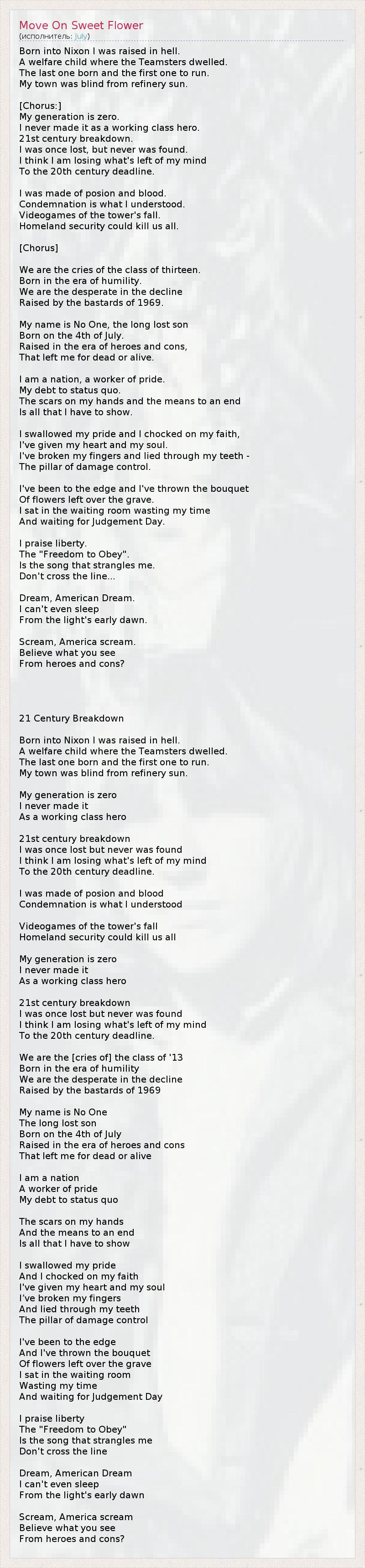 А как ты думаешь, о чем песня "Move On Sweet Flower" ?