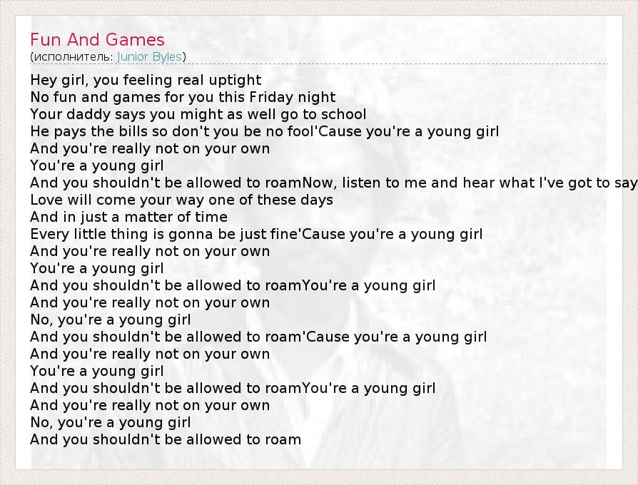 А как ты думаешь, о чем песня "Fun And Games" ?