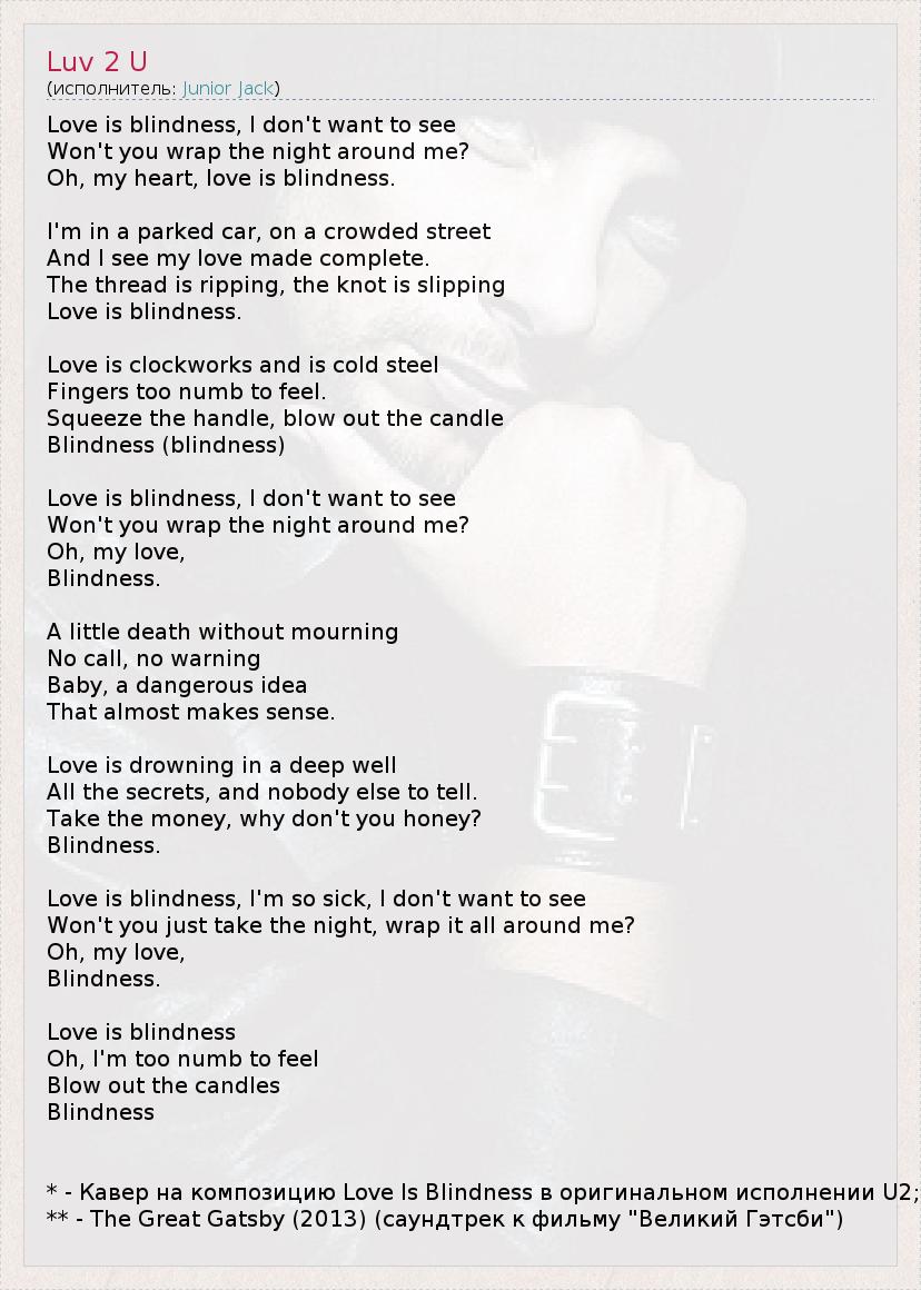 * - Кавер на композицию Love Is Blindness в оригинальном исполнении U2;