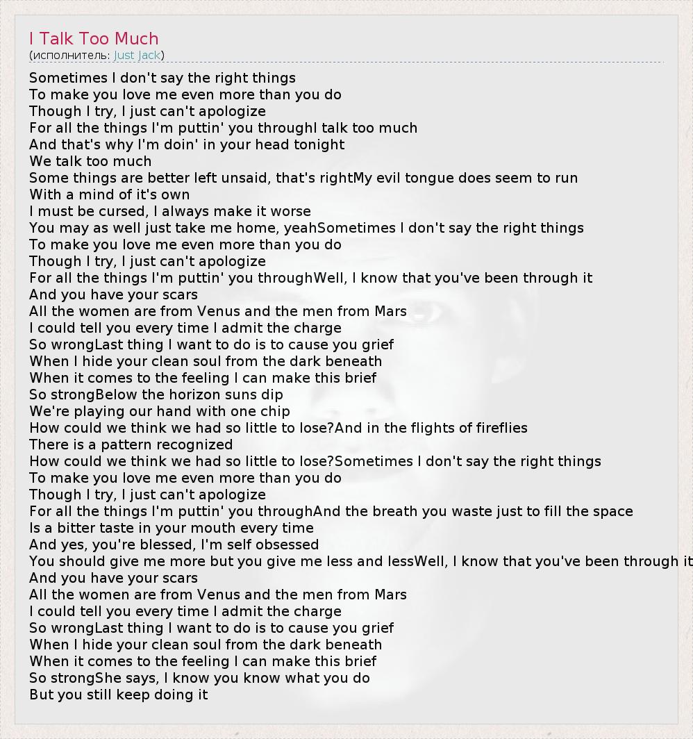 А как ты думаешь, о чем песня "I Talk Too Much" ?