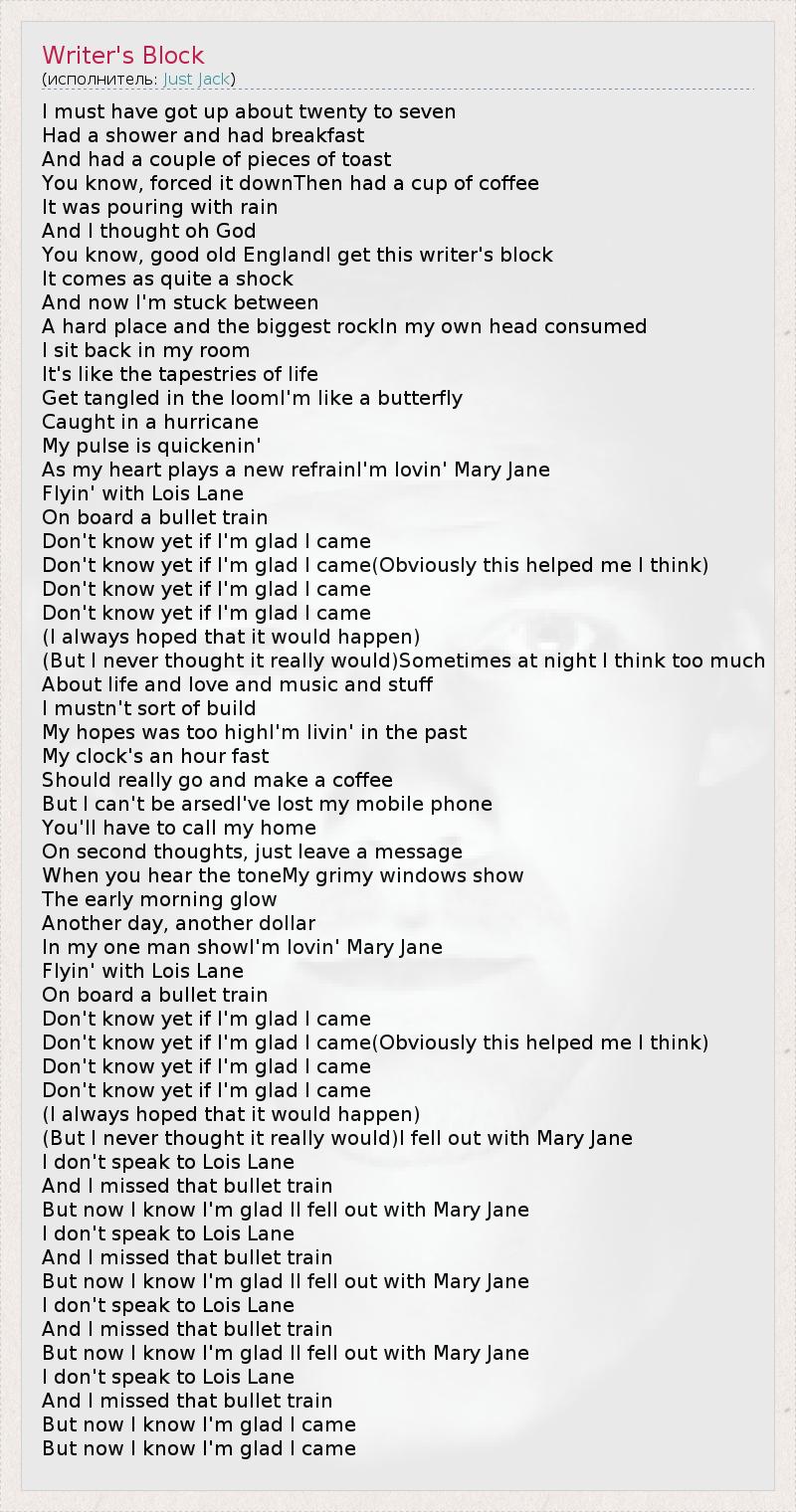 А как ты думаешь, о чем песня "Writer's Block" ?