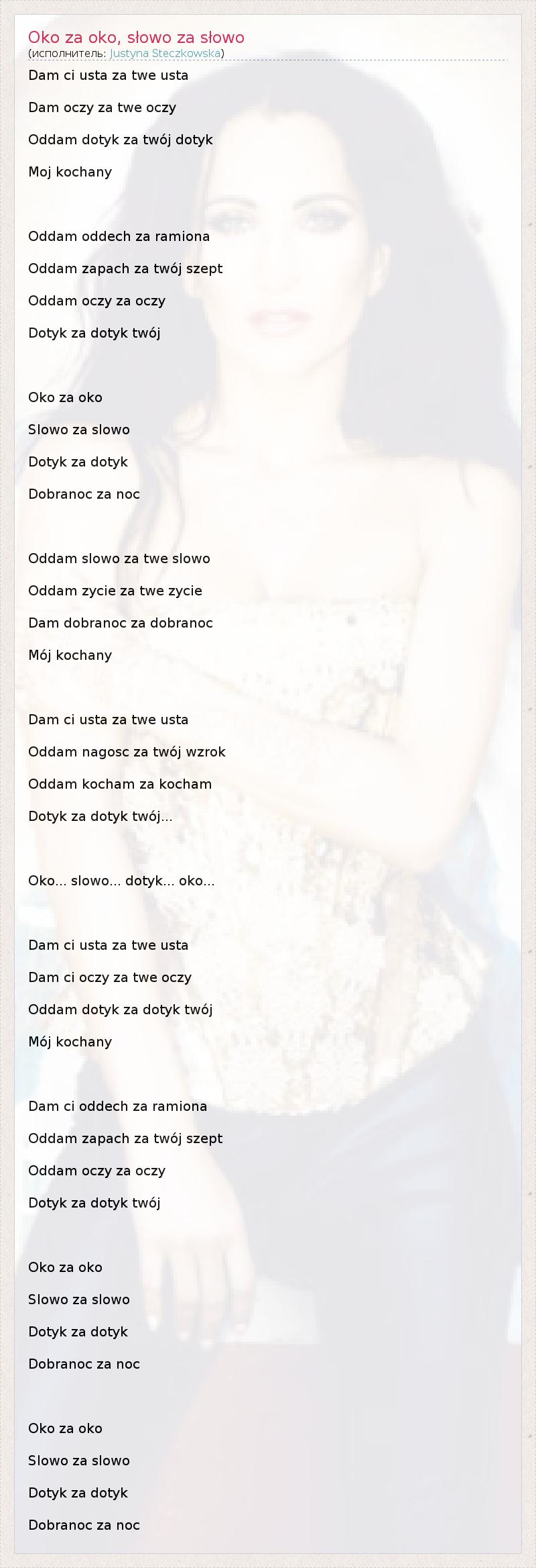 ГлавнаяИсполнителиJustyna SteczkowskaOko za oko, słowo za słowo