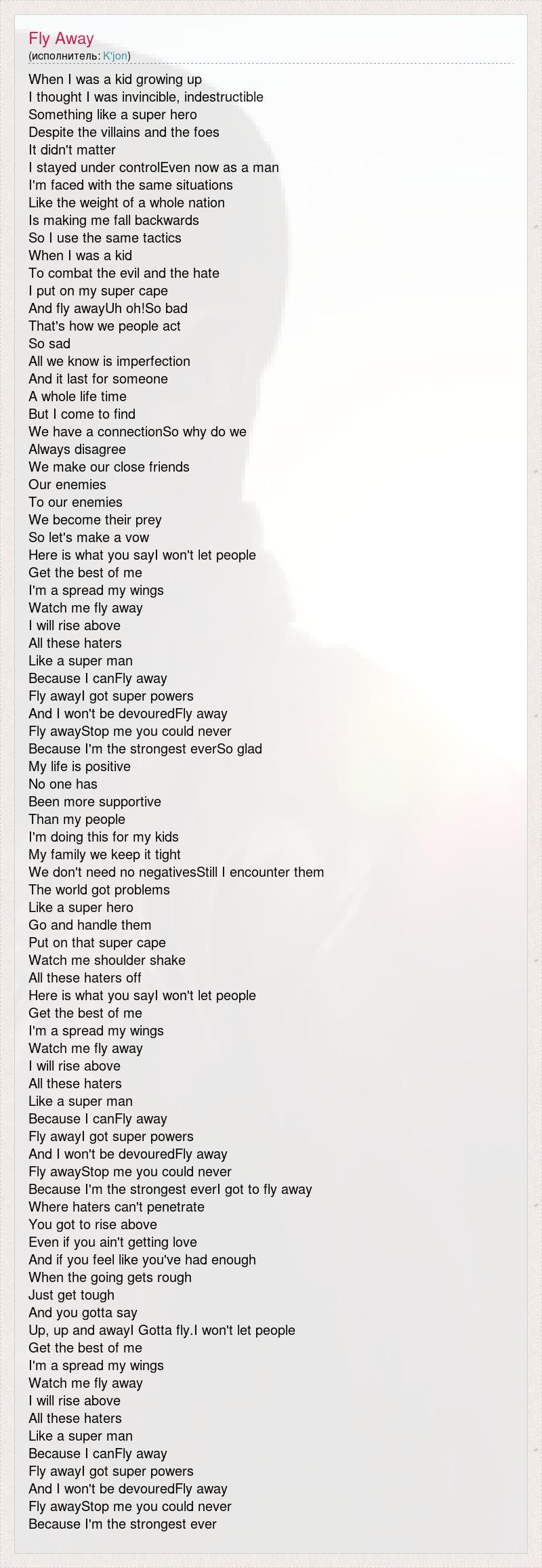 А как ты думаешь, о чем песня "Fly Away" ?