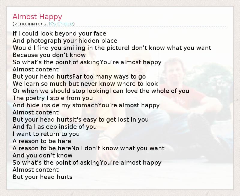 А как ты думаешь, о чем песня "Almost Happy" ?
