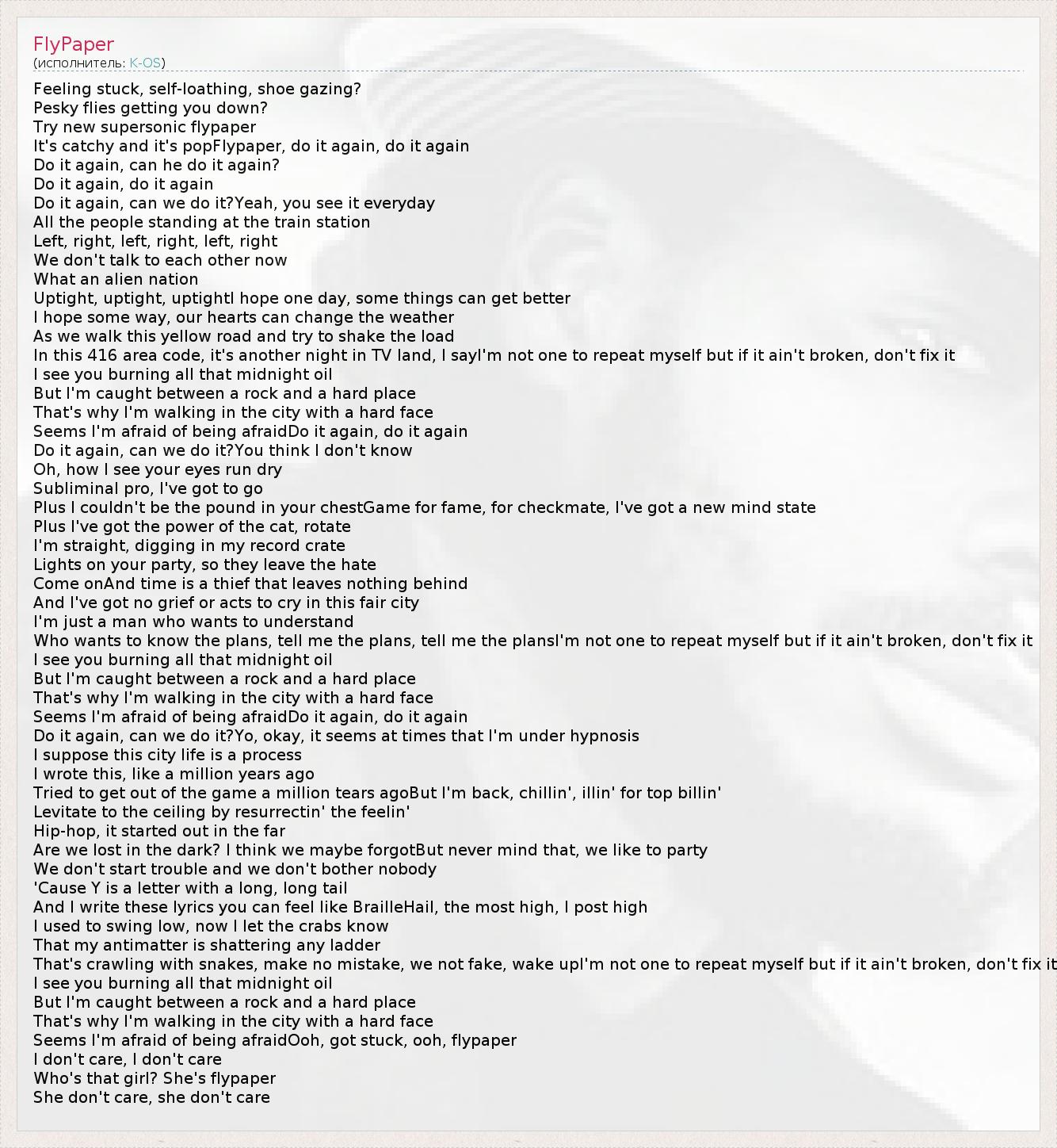 А как ты думаешь, о чем песня "FlyPaper" ?