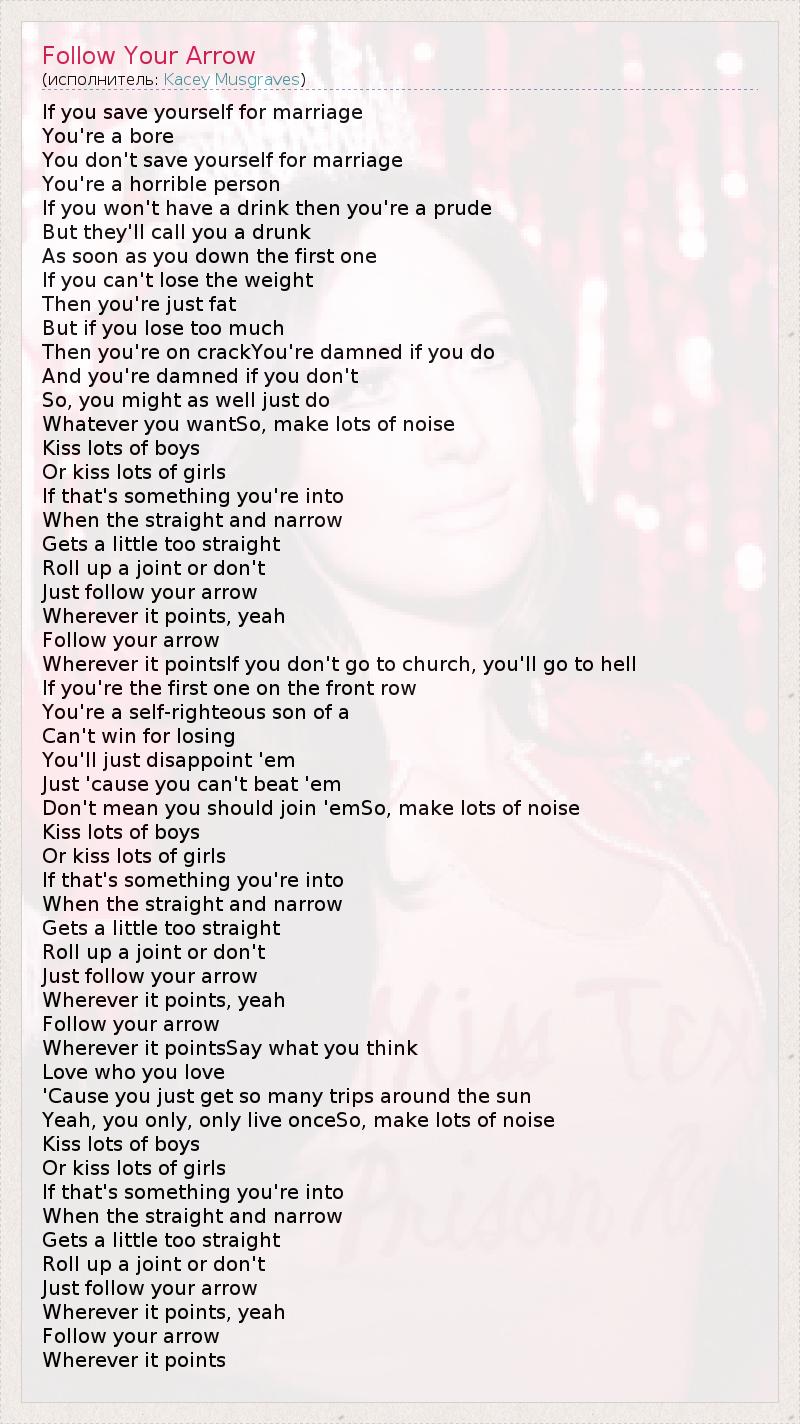 А как ты думаешь, о чем песня "Follow Your Arrow" ?