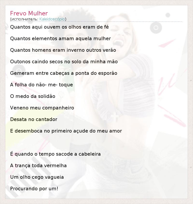 А как ты думаешь, о чем песня "Frevo Mulher" ?