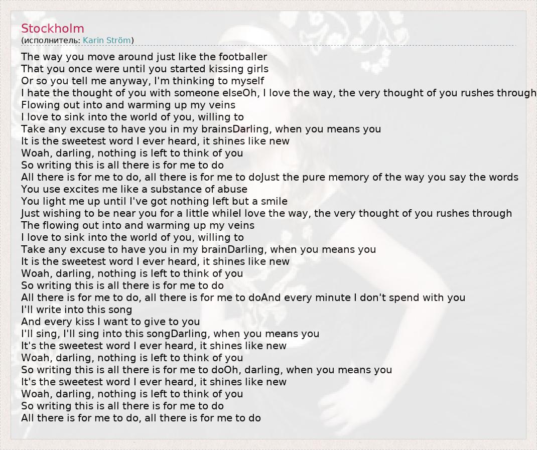 А как ты думаешь, о чем песня "Stockholm" ?