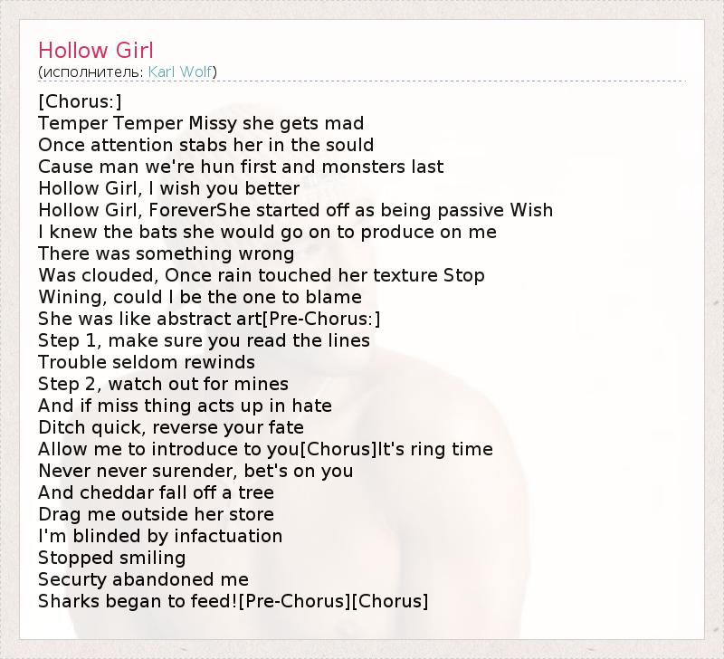 А как ты думаешь, о чем песня "Hollow Girl" ?