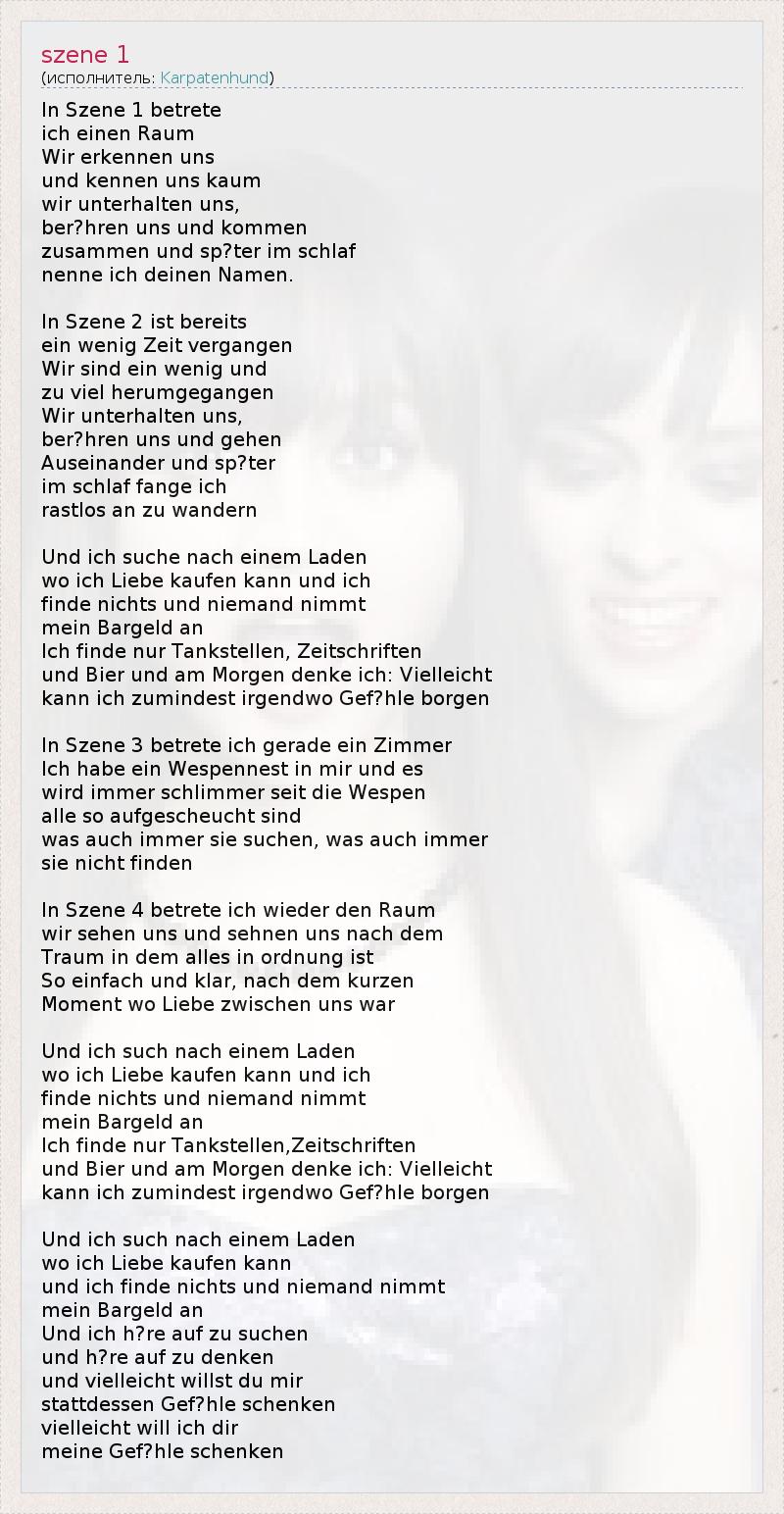 Это интересно:Недавно певицу Клэр Олкерс можно было увидеть в кинофильме "Облако". Там она показала большой актерский талант, но еще больший ее талант раскрылся в качестве солистки молодой немецкой команды Karpatenhund. Неповторимый голос Клэр – вот главная причина успеха группы. Наряду с Клэр, коллектив состоит из гитариста Яна Никласа Янсена, певца и гитариста Бьорна Зонненберга, ударника Маурицио... продолжение