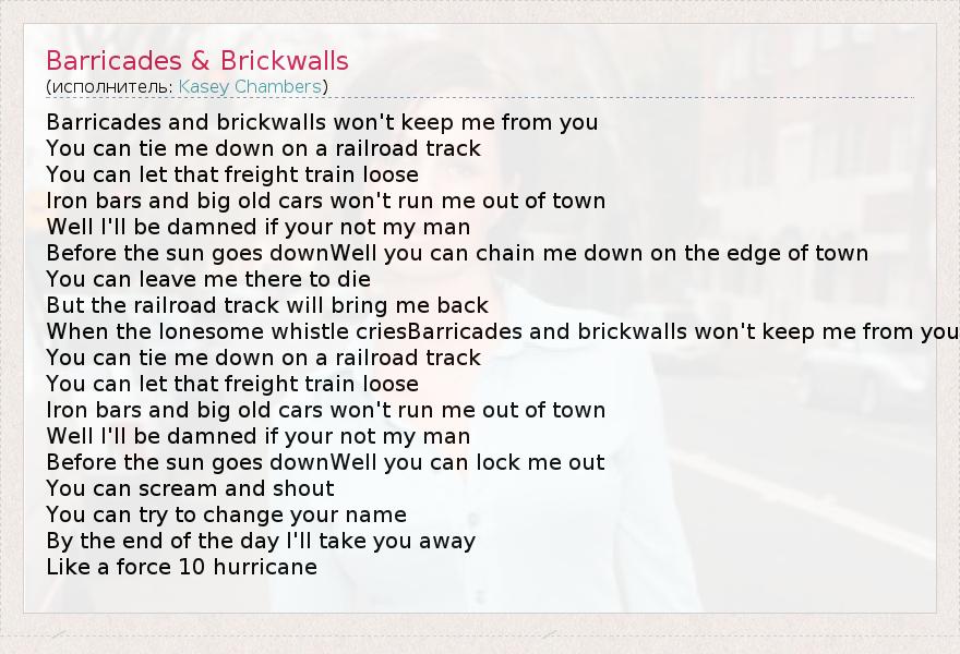 А как ты думаешь, о чем песня "Barricades & Brickwalls" ?