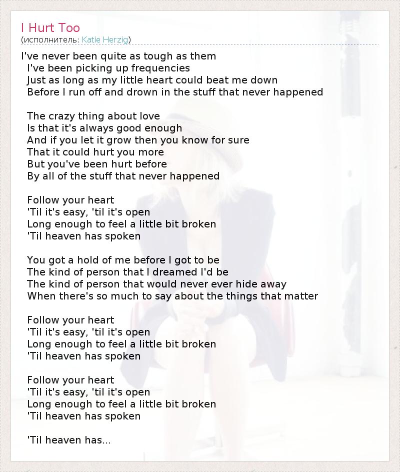 А как ты думаешь, о чем песня "I Hurt Too" ?