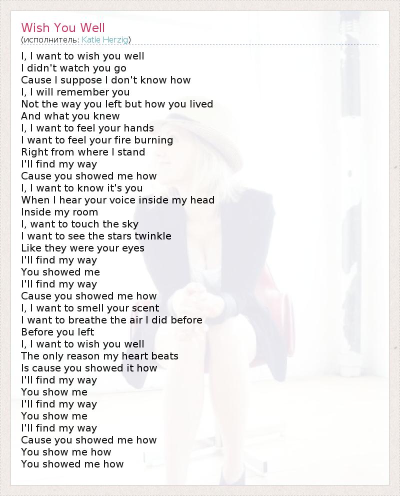 А как ты думаешь, о чем песня "Wish You Well" ?