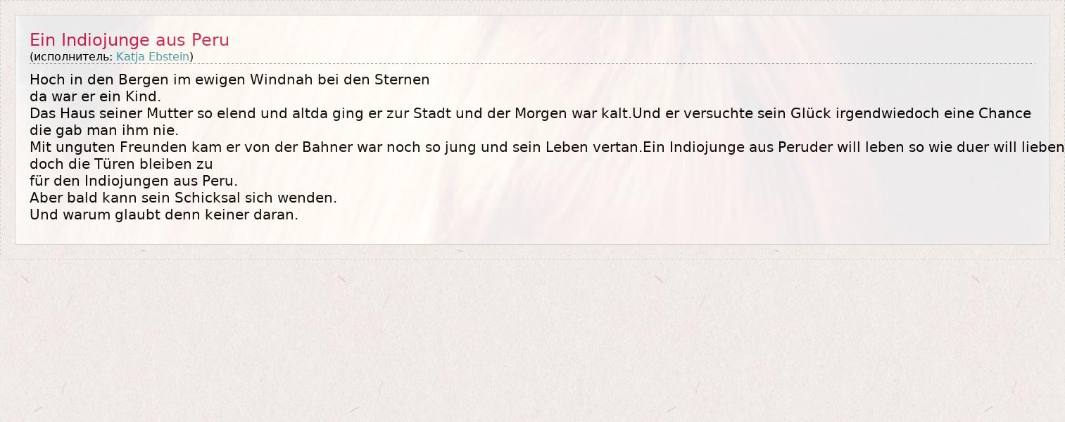 А как ты думаешь, о чем песня "Ein Indiojunge aus Peru" ?