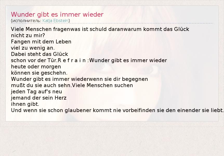 А как ты думаешь, о чем песня "Wunder gibt es immer wieder" ?