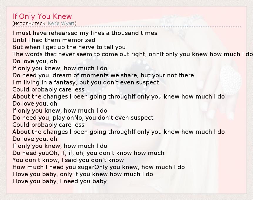 А как ты думаешь, о чем песня "If Only You Knew" ?