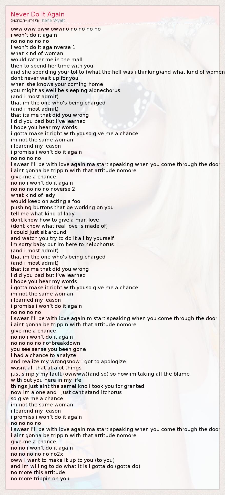 А как ты думаешь, о чем песня "Never Do It Again" ?
