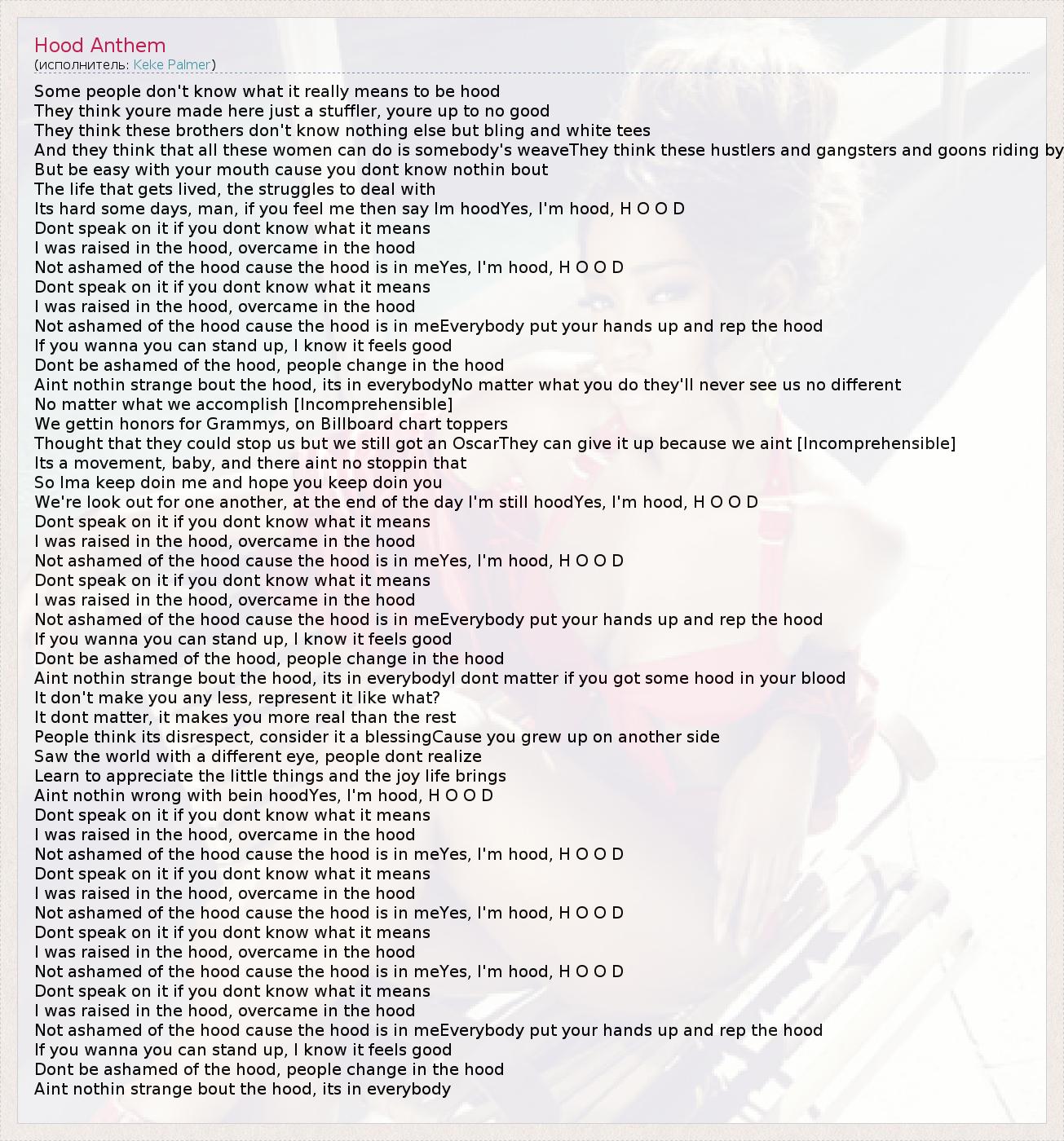 А как ты думаешь, о чем песня "Hood Anthem" ?