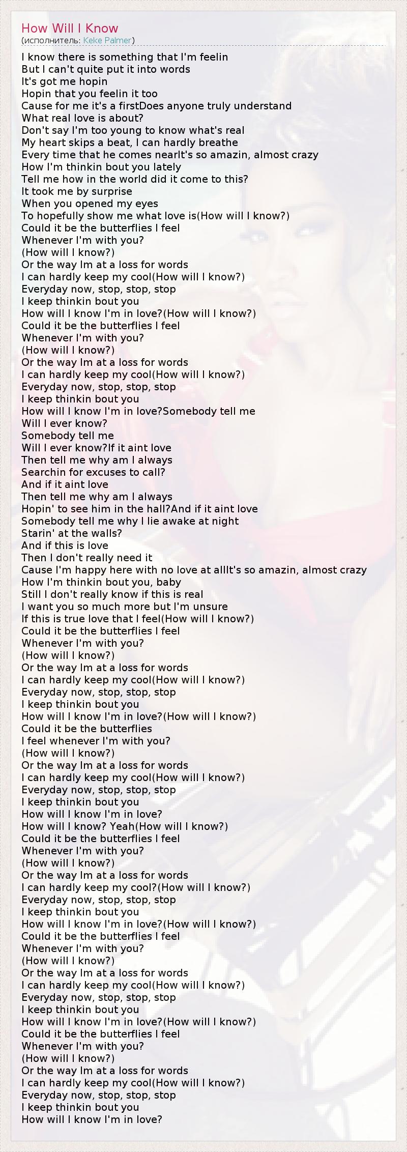 А как ты думаешь, о чем песня "How Will I Know" ?