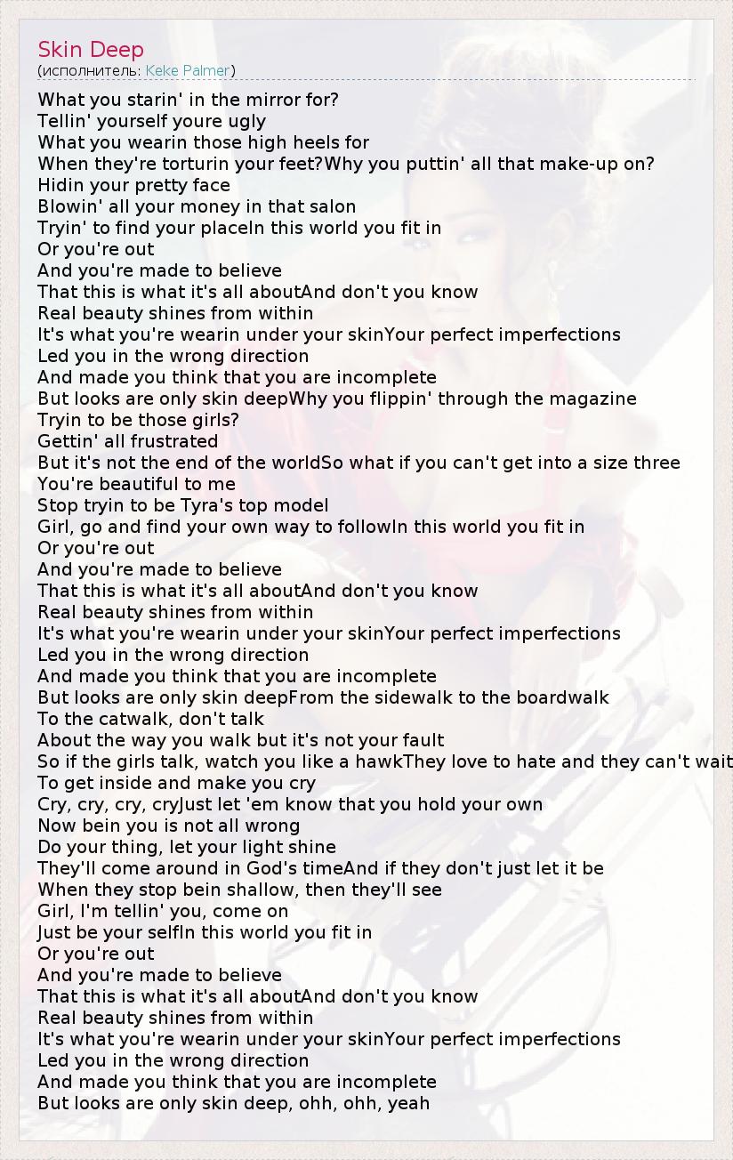 А как ты думаешь, о чем песня "Skin Deep" ?