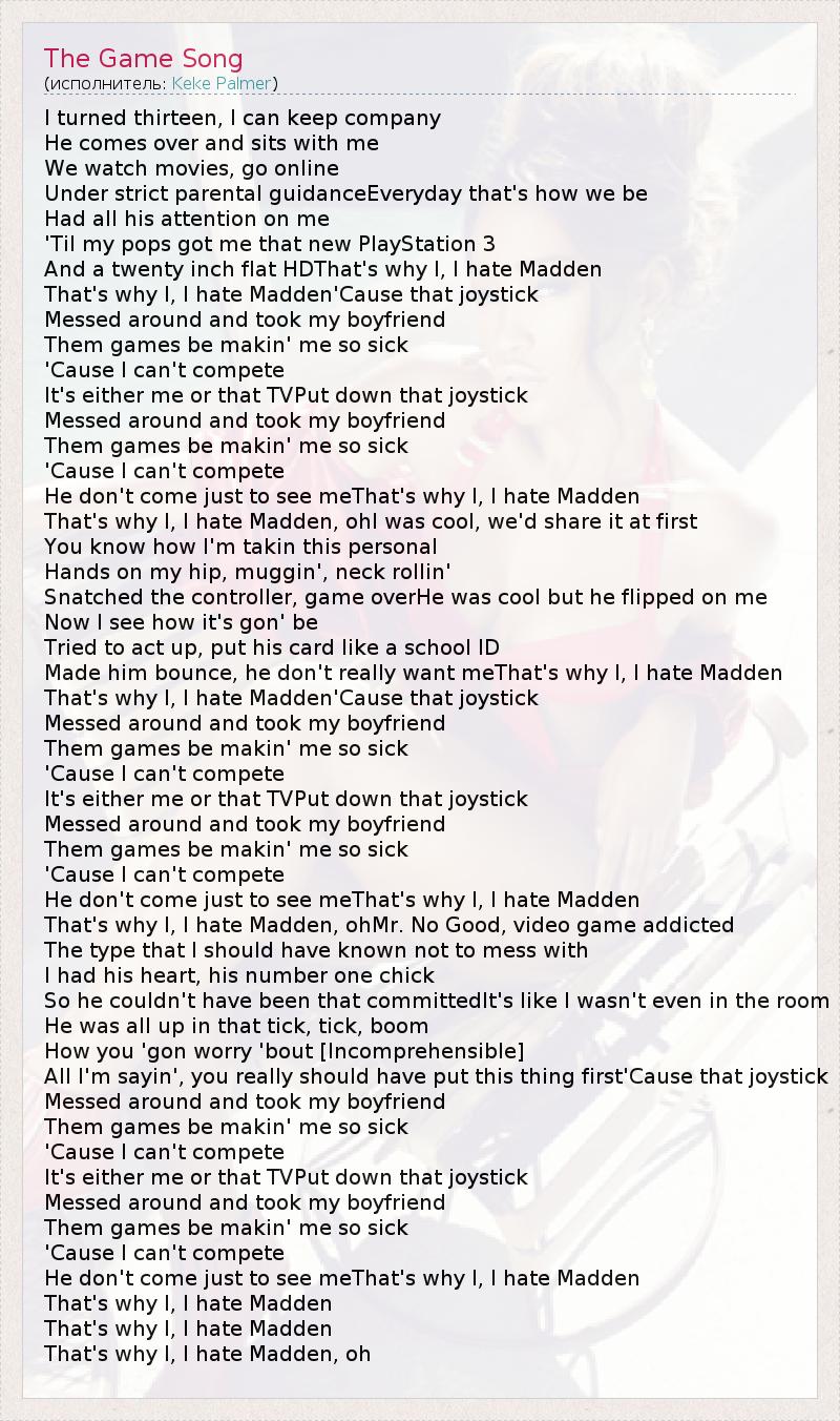 That's why I, I hate Madden, ohMr. No Good, video game addicted