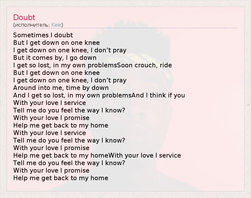 Sometimes I doubt But I get down on one knee I get down on one knee, I don't pray But it comes by, I go down I get so lost, in my own problemsSoon crouch, ride But I get down on one knee I get down on one knee, I don't pray Around into me, time by down And I get so lost, in my own problemsAnd I think if you With your love I service Tell me do you feel the way I know? With your love I promise Help me get back to my home With your love I service Tell me do you feel the way I know? With your love I promise Help me get back to my homeWith your love I service Tell me do you feel the way I know? With your love I promise Help me get back to my home