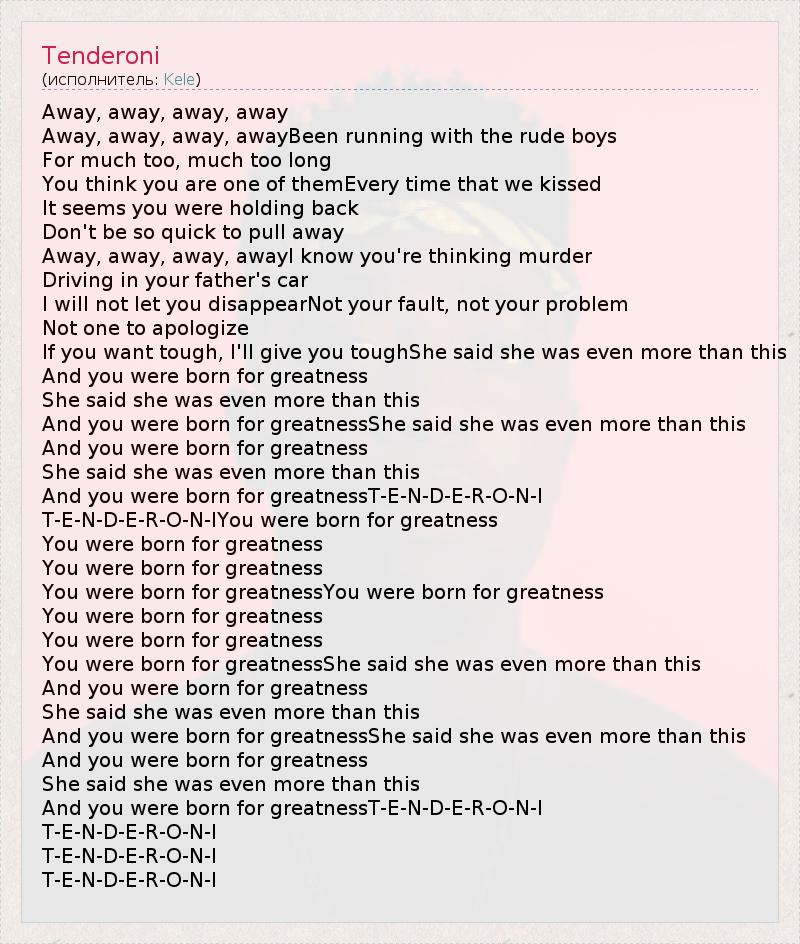 А как ты думаешь, о чем песня "Tenderoni" ?