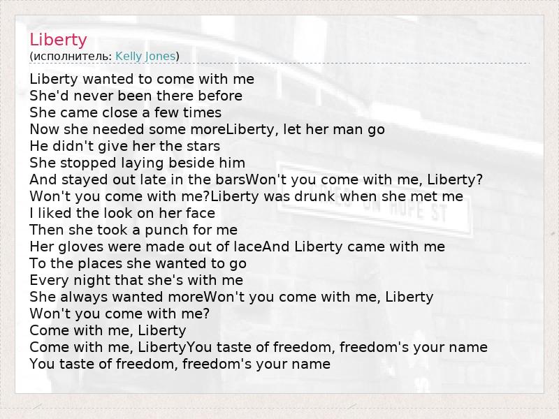 Come with me, LibertyYou taste of freedom, freedom's your name