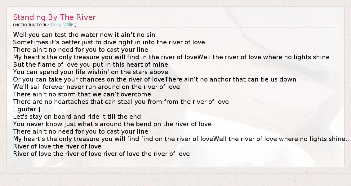 А как ты думаешь, о чем песня "Standing By The River" ?