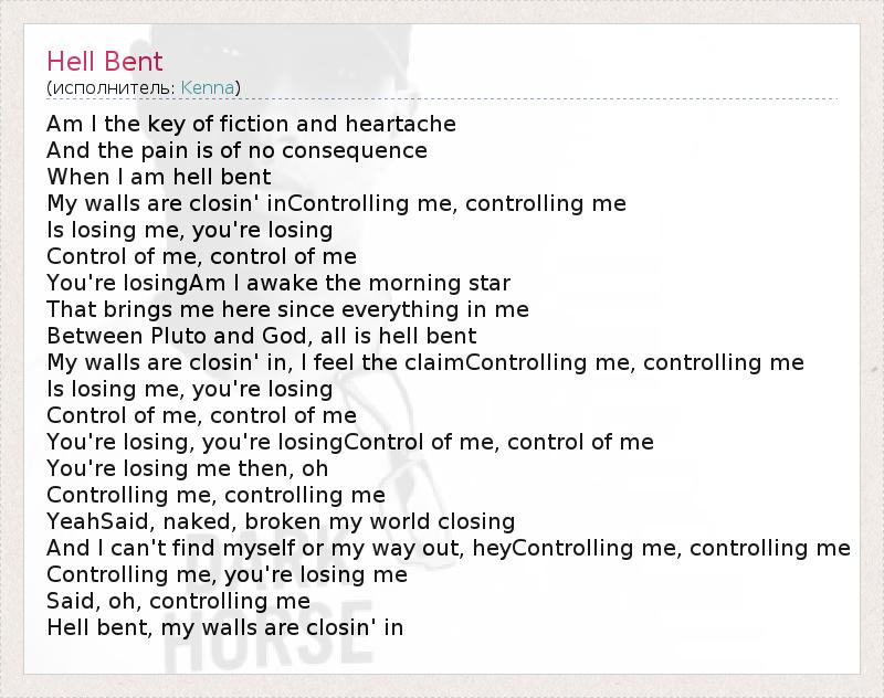 А как ты думаешь, о чем песня "Hell Bent" ?