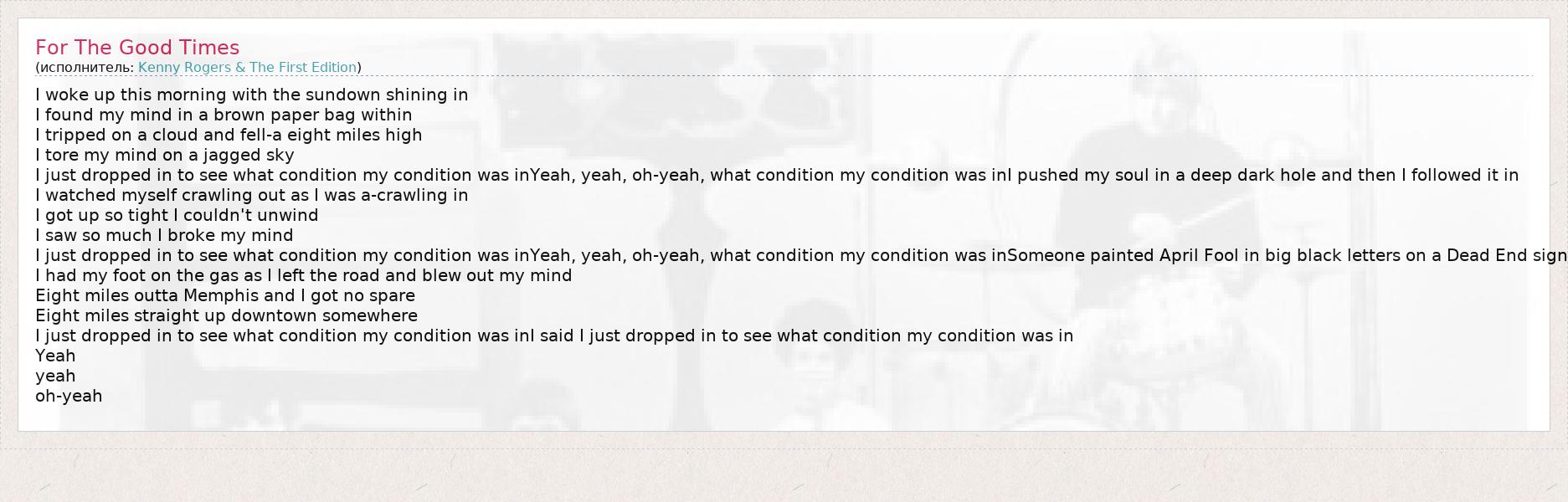 А как ты думаешь, о чем песня "For The Good Times" ?